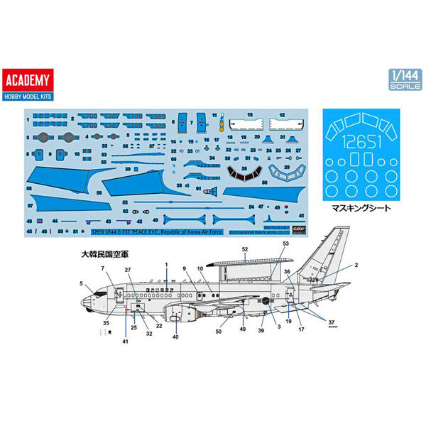 Recreate one of the most advanced surveillance aircraft in the Asia Pacific region with the Academy 12651 E-737 Peace Eye model kit in 1/144 scale. This highly detailed kit represents South Korea’s airborne early warning and control (AEW&C) platform, based on the Boeing 737 airframe.