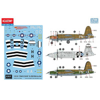 This Academy 1/144 scale model kit recreates the Martin B-26B Marauder, a fast and formidable medium bomber of World War II. Known for its speed and resilience, the B-26 served with distinction in the European and Mediterranean theatres, delivering precision strikes while enduring heavy enemy fire. The kit provides fine surface detail, accurate proportions, and a choice of authentic markings