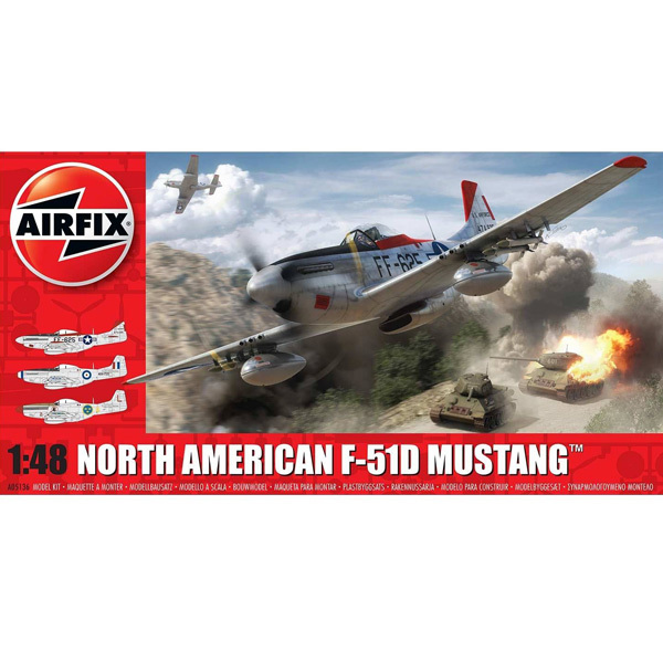 Featuring new parts and new schemes! Scheme 1: Rotation Blues 67th FBS Korea Scheme 2: F51D 77 Squadron RAAF Korea 1951 Scheme 3: J26 Mustang, Swedish Air Force As arguably the finest fighter aircraft of WWII, the Mustang went on to be selected as the USAF primary piston engined fighter after the war, with all other types relegated to secondary roles, or withdrawn from service. The re-designation of USAF aircraft in 1948 saw the P for Pursuit change to F for Fighter, resulting in the Mustang becoming a North American F-51D