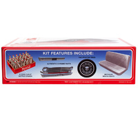 QUICK SPECS: 1/25 scale, 40 easy to assemble parts; approximately 6 inches long once assembled. Moulded in off-white with black vinyl tyres, chrome-plated bumpers, wheels and more!