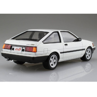 From "Initial D" comes an Aoshima 1/24th scale kit of the AE85 Levin driven by Itsuki Takeuchi. Special aluminium wheels are included, along with a bucket seat. Window frame stickers are also included.
