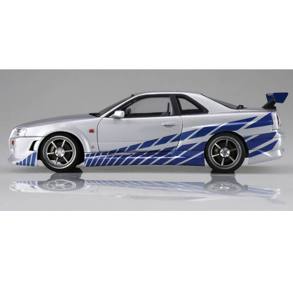 The R34 Skyline GT-R, the car driven by main character Brian O'Conner in the 2003 car action movie 2 Fast 2 Furious, is now available as a plastic model kit