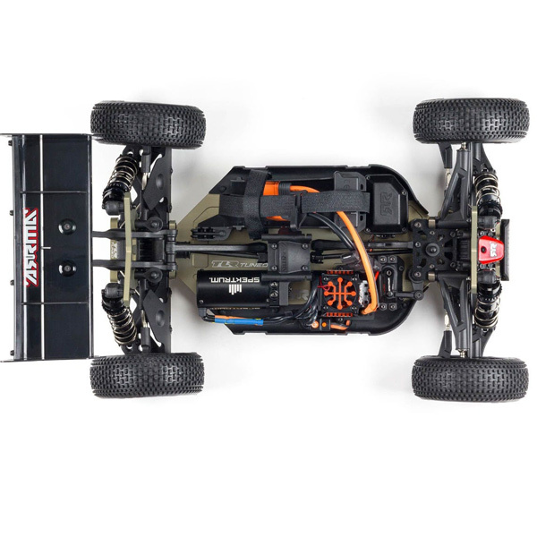 With its powerful 4S and 6S LiPo capable Spektrum brushless power system, the TLR Tuned TYPHON blasts over rough terrain with ease. On 4S, you can compete at your local racetrack. With the additional power of a 6S LiPo, the TLR Tuned TYPHON performs stunts and tackles big jumps at your favourite off-road bash location.