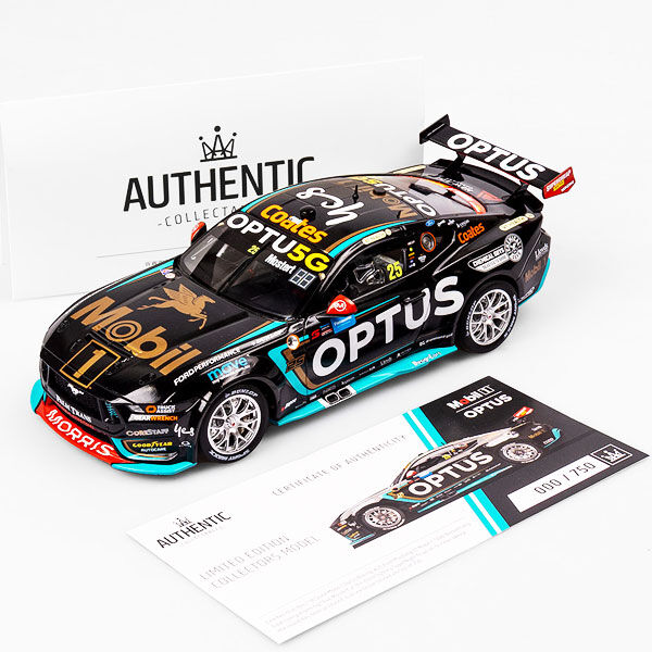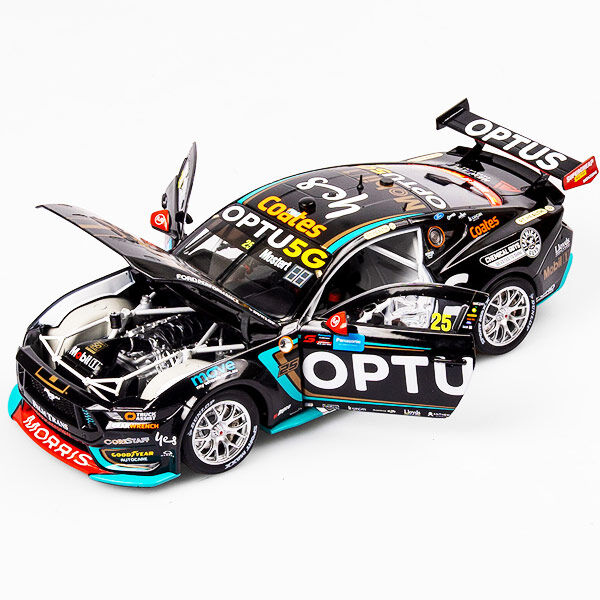 This 1:18 scale #25 Mobil 1 Optus Racing Chaz Mostert edition comes in high detail diecast with opening parts, including the bonnet and both the driver and passenger doors.