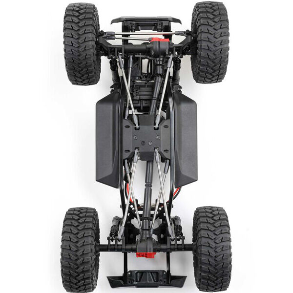 Axial also incorporates a clipless mounting system for the Pro-Line Coyote body, enhancing the rig’s looks by eliminating visible body clips. The body is hinged at the rear and removes completely for effortless chassis access. There are no clips to fuss with and lose. For the best performance on the trails, the body is pinched in the front, dovetailed, and bobbed in the rear, and only as wide as necessary. It slips through narrow obstacles and allows ample tyre clearance and suspension articulation.