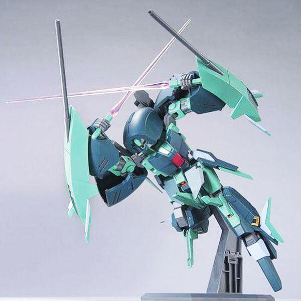 The HGUC line has added Anksha, a transformable MS featured in episode 5 of Mobile Suit Gundam Unicorn. With the help of replacement parts, it is possible to mimic the MS to flight form transformation.