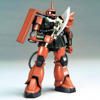 This is the HGUC rendition of Garma Zabi's custom Zaku II, which features more intimidating weaponry than any other Zaku kit. It comes with a Zaku machine gun, bazooka, Magella top cannon, and a very mean looking heat hawk. There are also several pairs of interchangeable hands to increase your posing possibilities!