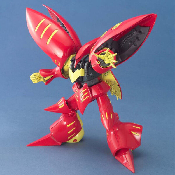 From ZZ Gundam we have the very unique and beautiful Qubeley Mk-II in the maroon and yellow scheme as flown by Ple Two, the first activated clone of El Peo Ple.