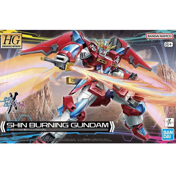 Bandai proudly presents the Shin Burning Gundam, an exciting addition to the Gundam Build Series 10th anniversary video, Gundam Build Metaverse, in the form of a new High Grade (HG) model kit! Prepare to witness the power of this magnificent mech.The Shin Burning Gundam kit includes an array of effect parts to enhance its presence on display. Notably, it features cloak effects inspired by the Master Gundam, adding an extra layer of dynamic flair to its appearance.