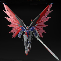 The Destiny Gundam Spec II has now joined Bandai's "HG (High Grade)" model kit series, accompanied by its impressive super large armament, the Zeus Silhouette! This formidable addition can transform into a standalone MA form, boasting a length of over 50cm, and can be elegantly displayed on the provided action base. The Zeus Silhouette features movable hatches on its back and legs, allowing for dynamic poses, and with parts replacement, you can replicate the exposed state of the missile warhead. The HG Destiny Gundam Spec II comes moulded in colour, with clear parts for the Wings of Light, effect parts for the Palma Fiocina, beam shield, and beam boomerang also included. Additionally, the kit features various weapons for the Destiny Gundam, such as the Arondight beam sword and the high energy long range beam cannon.