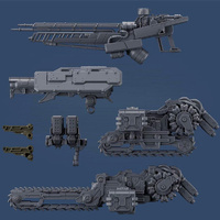 Included weapons are the WB-0000 BAD COOK, WB-0010 DOUBLE TROUBLE, BML-G2/P19SPL-12, and SB-033M MORLEY. The chainsaw attachment of WB-0010 DOUBLE TROUBLE comes in both stored and deployed versions for added versatility in display.
