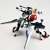 Its arm mounted 200mm cannon can rotate and slide into firing position without parts replacement, and the deployable arms add convenience and flexibility. The twin maces can be suspended from the backpack using included joint parts, and the knee armour mechanism moves in sync with leg articulation for a seamless look. Additional movable leg and heel armour prevent interference, supporting a wide range of powerful stances. The kit also includes a pilot figure of Mikazuki Augus, which fits inside the cockpit hatch, making it a perfect centrepiece for any Iron Blooded Orphans collection.