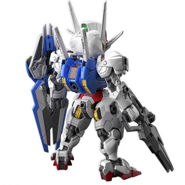 The internal frame incorporates metallic silver parts and a range of moulding colours, creating a high density design that adds depth and visual appeal to the Gundam Aerial model.