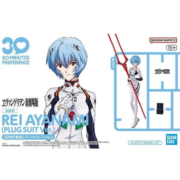 Rei Ayanami from Evangelion: 3.0+1.0 Thrice Upon a Time joins Bandai's 30MP (30 Minutes Preference) fully posable figure kit lineup, wearing her iconic plugsuit! A wide range of accessories is included.