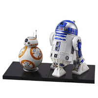 This model kit of BB-8 & R2-D2 in 1/12 scale contains 180 parts and 59 decals. It comes with several optional parts and two base plates. The ball of BB-8 is rotatable; the middle gear of R2-D2 can be retracted. R2-D2, or Artoo-Detoo, is a fictional robot character in the Star Wars franchise created by George Lucas in the 70’s. A small astromech droid, R2-D2 is a major character and appears in nine out of the ten Star Wars films to date. Throughout the course of the films, R2 is a friend to Padmé Amidala, Anakin Skywalker, Leia Organa, Luke Skywalker, and Obi-Wan Kenobi in various points in the Star Wars saga.