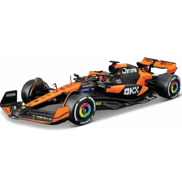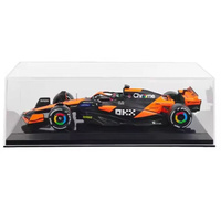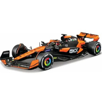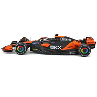 This 1:24 scale McLaren MCL38 2024 model, featuring Oscar Piastri's helmet, is a highly detailed diecast replica. With a focus on accuracy, the car is crafted to reflect McLaren's innovative design and Formula 1 racing technology.