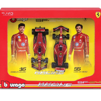 This two pack set showcases the cars of Charles Leclerc and Carlos Sainz, perfectly capturing the iconic red livery and intricate details of the SF-24. Designed with precision and craftsmanship, this set is a must have for collectors and Formula 1 enthusiasts.