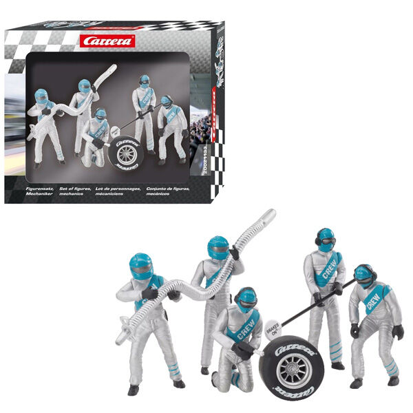 The Carrera mechanic crew consists of five figures in silver outfits. In addition to the detailed workmanship, the modern figures also win you over with their different, adjustable or rotatable body parts.