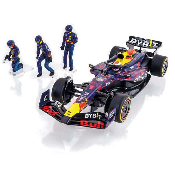 Includes three pit crew member figurines