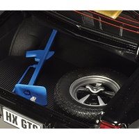 This 1/18 scale replica model is represented in the Tuxedo Black colour scheme. This sleek, deep black finish contributed to the vehicle's distinctive and bold appearance, enhancing its muscular design and complementing features like the refined grille and prominent GTS decals, including special "Gold-outs" instead of the standard "Black-outs" exclusive to the Tuxedo Black models. The HX series offered a range of vibrant colours, with Tuxedo Black standing out as a classic choice among enthusiasts.