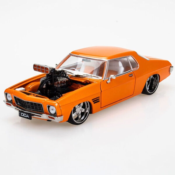 Built with a diecast body featuring opening front doors, bonnet and boot, it reveals a highly detailed supercharged LS engine and a fully detailed interior. Custom chrome mags with rubber tyres complete the look, giving this HQ a tough stance worthy of any show or street scene.