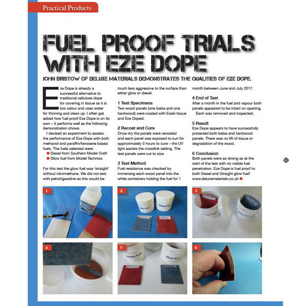 Introducing a specially developed water soluble dope, designed to effectively shrink, strengthen, and protect model tissue paper from wind exposure.