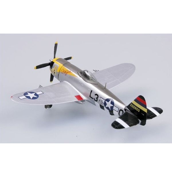 Designed by Alexander Kartveli meeting a USAAC requirement for a heavy fighter, the P-47 was first flown on May 6th, 1941. Later models featured a "bubble-top" canopy rather than the sharply peaked "razorback" fuselage which resulted in poor visibility for the aircraft's pilot. The P-47, a deadly pursuit aircraft, featured 8 x 12.7mm machine guns; all mounted in the wings. Even with the complicated turbo supercharger system, the sturdy airframe and tough radial engine, the P-47 ("Jug" or "Juggernaut" as it was nicknamed) could absorb damage and still return home. Built in greater quantities than any other US fighter, the P-47 was the heaviest single-engine WWII fighter and the first piston-powered fighter to exceed 500 mph.