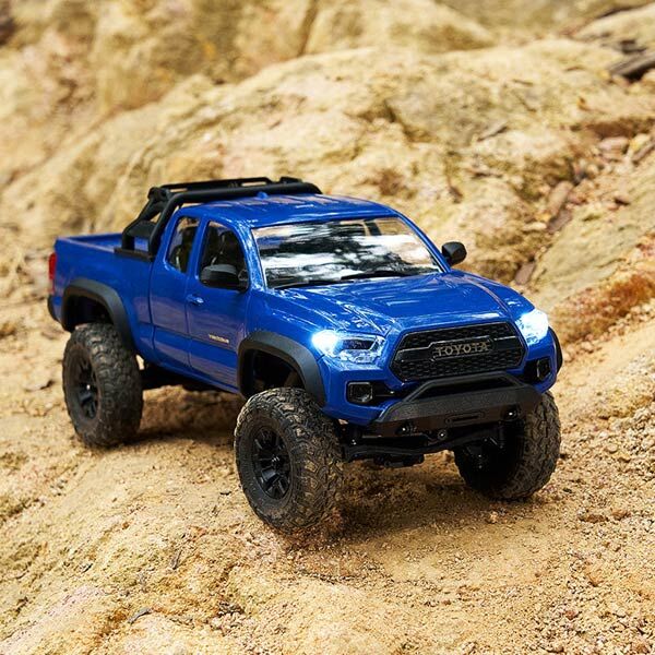 The FMS Toyota Tacoma 1/24 RTR in blue combines officially licensed scale detail with impressive off road capability. Built on the advanced FCX24M chassis, this compact crawler features a hard body ABS shell, two speed transmission, and a robust drivetrain for confident crawling and trail driving straight out of the box.