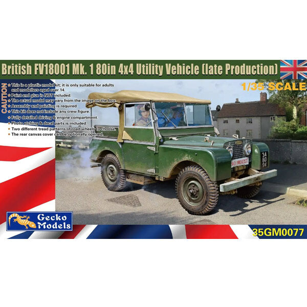 This detailed 1/35 scale kit from Gecko Models represents the late production version of the British FV18001 Mk. 1 80-inch 4×4 utility vehicle. Based on the iconic Land Rover design, this vehicle served the British Army with reliability and adaptability across a wide range of roles, from troop transport to communications and reconnaissance.