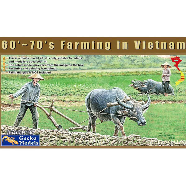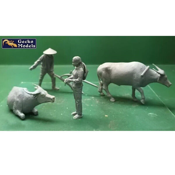 This set from Gecko Models captures that contrast — a quiet moment of agrarian life within a theatre of war. Civilian farmers and their animals coexisted alongside advancing armies, supply convoys, and combat operations, making such scenes common yet poignant. Integrating this set into a Vietnam War diorama introduces a compelling human element and enriches the storytelling of any display.