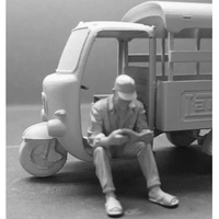 Plastic model kit to build a Vietnam Saigon Shuttle Motor-Tricycle Depot and a take break driver 1/35 by Gecko Models.
