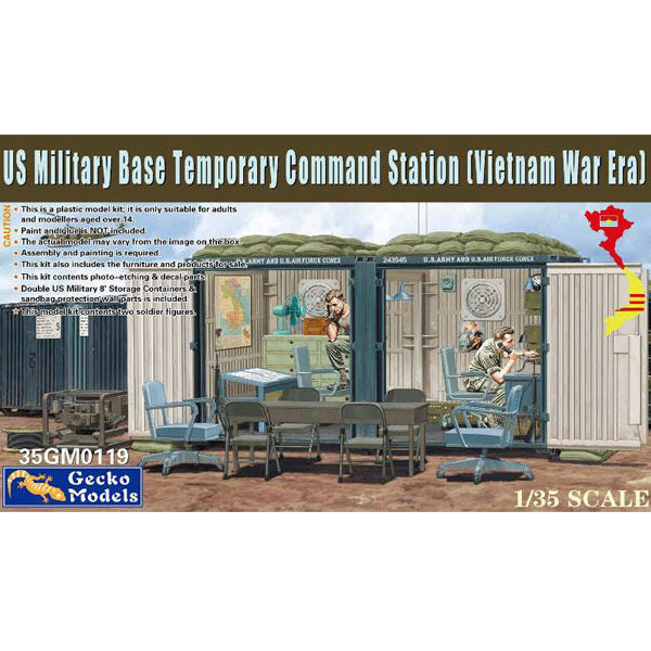 The Gecko Models US Military Base Temporary Command Station (Vietnam War Era) is a highly detailed 1/35 scale diorama set recreating the tactical heart of a forward operating post. Designed with accuracy and realism in mind, this kit provides an immersive depiction of a Vietnam War era field headquarters complete with authentic furniture, radio equipment, and personnel.
