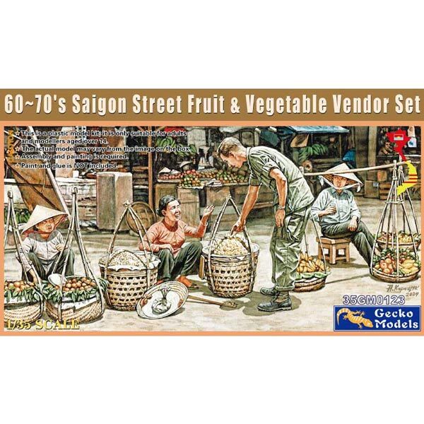 The Gecko Models 60s–70s Saigon Greengrocer Figure Set captures the vibrant life of Vietnam’s bustling street markets during the mid 20th century. This detailed 1/35 scale kit features a realistic depiction of local vendors and their produce, ideal for enhancing Vietnam War era dioramas with an authentic civilian touch. The figures are sculpted with lifelike expressions and poses that reflect the daily hustle of Saigon’s markets.