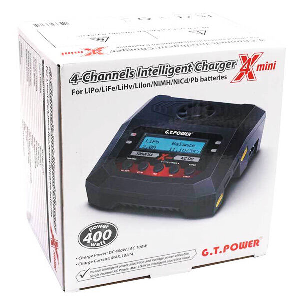 The X4 Mini is a 4 Channel Intelligent Battery Charger that can charge up to 4 Batteries at once. 100W is available on all 4 charging outlets and will charge LiPo, LiFe, LiHv, Li-ion, Ni-Mh, Ni-Cad and Pb batteries. Features intelligent power allocation modes, AC or DC input voltage operation and online firmware upgradeable. Its the only charger you will ever need.