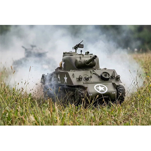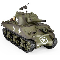 The advanced 7.0 Multi-Function Unit gives you a totally immersive visual and sound experience, syncing realistic smoke generation with the guttural roar of the engine and gunfire that is emphasised with a physical hull recoil when you fire. Whether you're conducting in the backyard, driving through the front line or engaging in a high stakes infrared duel with friends, the Heng Long USA M4A3 Sherman RC Tank is the ultimate, battle ready icon for you.