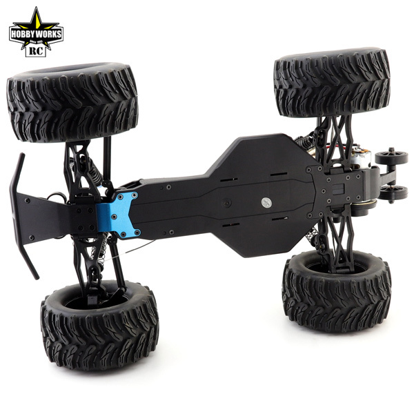 Hobby Works RC Mud Digger is the original and our best selling high performance 1/10th Monster Truck and it has just got better, with the all new Version 2. Its legendary ruggedness which is now even better with the Alloy front kick plate, has made the Mud Digger name synonymous with off-road fun. The Mud Digger has a bold look and innovative features. With a fast 14t 550 motor and a tall drive-over-anything ground clearance, Mud Digger rips through grass and powers over curbs. Waterproof electronics allow it to blast through puddles and shred snow for all-weather adventure. So get into Hobby Works quality and performance and discover a whole new level of fun with the Hobby Works Mud Digger!
