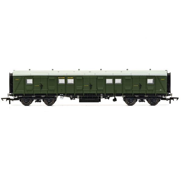 The Southern Railway Ganward Bogie Luggage Vans were initially introduced in SR Olive Green livery, a very small number gained malachite. Under British Railways they were in crimson, with as few as six painted BR Green.