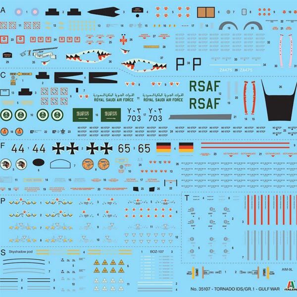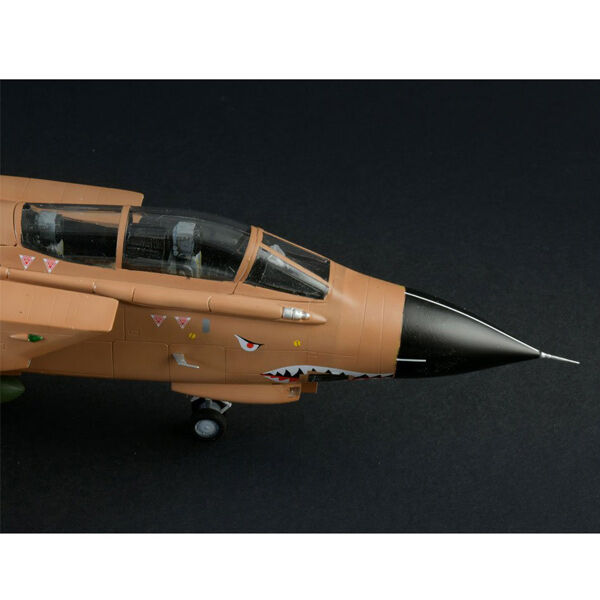 Multirole Tornado is a twin engine combat aircraft with a variable sweep wing. This kind of aircraft is the result of a joint development project carried out by British, German and Italian companies. Although during its lifetime it has been used for several purposes (ground attack, electronic combat/reconnaissance, interceptor), its main role has always been to perform low altitude penetrating strike missions. Tornado can load and use a powerful and varied set of offensive weapons. Thanks to its two powerful afterburning turbofans, the Tornado can reach the max speed of Mach 2.2. The Tornado baptism of fire took place in 1991 during the Gulf War. The air campaign of the Gulf War, in which the Italian Tornados IDS took part, began on 17th January. The goal of the aerial bombing campaign was the suppression of military targets and infrastructures.