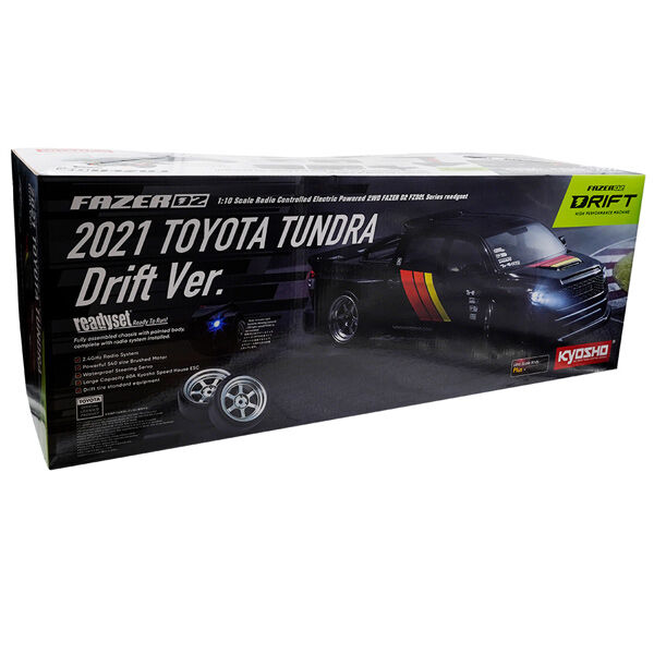 The Kyosho FAZER D2 FZD2L Drift Readyset brings the iconic 2021 Toyota Tundra to the drift track with a brand new chassis platform optimised for sideways action. This 1/10 scale 2WD electric model features updated electronics and precise handling, making it ideal for drift enthusiasts of all skill levels.
