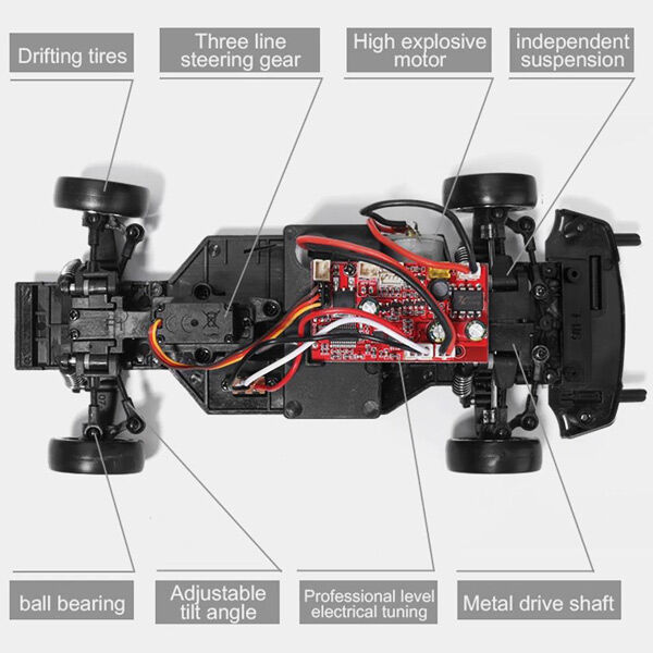 With a powerful 150 brushed high speed motor, 9g steering servo, and independent 4 wheel suspension, this car is more than just a toy—it's a capable performer for both beginners and hobbyists looking for affordable drifting fun. The built in gyroscope system helps maintain stability during aggressive slides, while the 2.4GHz 3 channel transmitter offers responsive, interference free control.