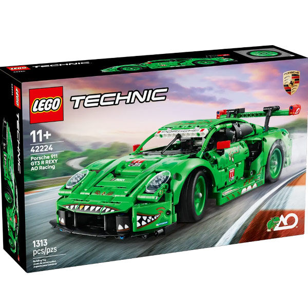 Fuel epic play with this dinosaur themed endurance race car for kids ages 11 years and up. Packed with cool details, the LEGO® Technic™ Porsche 911 GT3 R REXY AO Racing Car (42224) is made for boys and girls who love fast action play. Kids can take control using the steering knob on top, then check out the working suspension on all 4 wheels, the rear wheel drive with differential, 6 cylinder boxer engine with correct firing order, opening doors and trunk and synchronised air jacks. And with its fierce T. rex themed livery, this model looks just as awesome on display as it does on the racetrack. This set makes a fun gift for dinosaur fans and car enthusiasts. LEGO Technic sets feature realistic movements and mechanisms that introduce young LEGO builders to the universe of engineering in an approachable way. Kids can build with confidence using the LEGO Builder app – zoom, rotate in 3D and track progress with easy to follow digital instructions. Set contains 1,313 pieces.