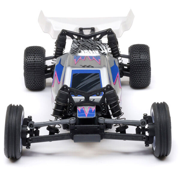 The Micro-B buggy's next level aluminium chassis is an RC industry first for micro vehicles. Inspired by the championship winning TLR racing buggy, the Micro-B chassis includes front caster kick and side bends to create a strong and rigid foundation.