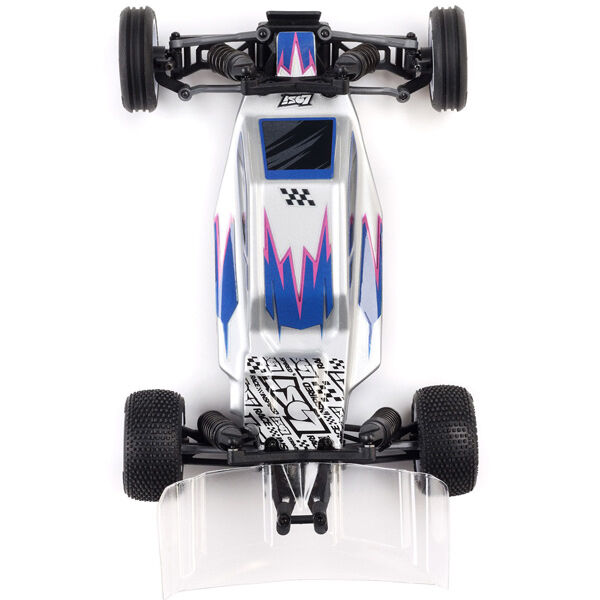 Losi has taken micros to the next level with the Micro-B. It not only looks like buggy that won the 2023 IFMAR World Championships, but includes oil filled shocks for optimal handling and jumping during racing. The shocks can be tuned with optional shock fluid and springs and adjusted with the included pre load clips.