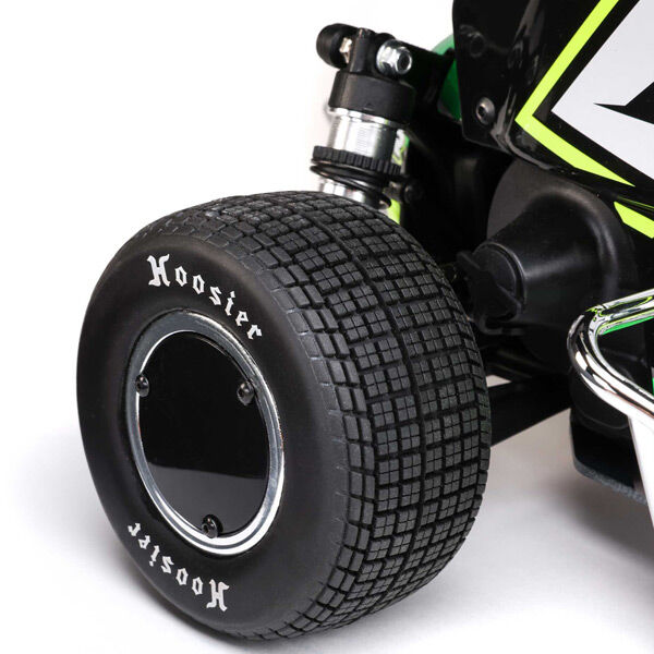 Numerous scale details take its realism to the next level - moulded and electroplated exhaust, a hand painted driver figure with a post anchor device and race seat, steering wheel and scale steering box interior, and much more. It comes out of the box as a winged sprint car, but the front and rear wings can easily be removed to race in another class. The officially licensed Hoosier tyres feature a soft compound that’s ideal for most tracks. If you race often on high traction, high wear surfaces, a hard compound version is available separately.