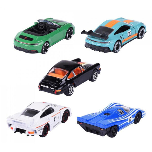 Majorette Porsche Car Set – 5 diecast model cars with free wheel drive and opening parts, including 2 exclusive models