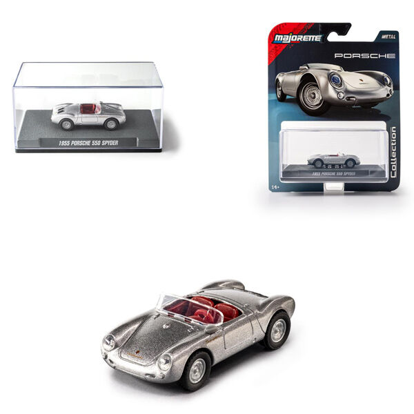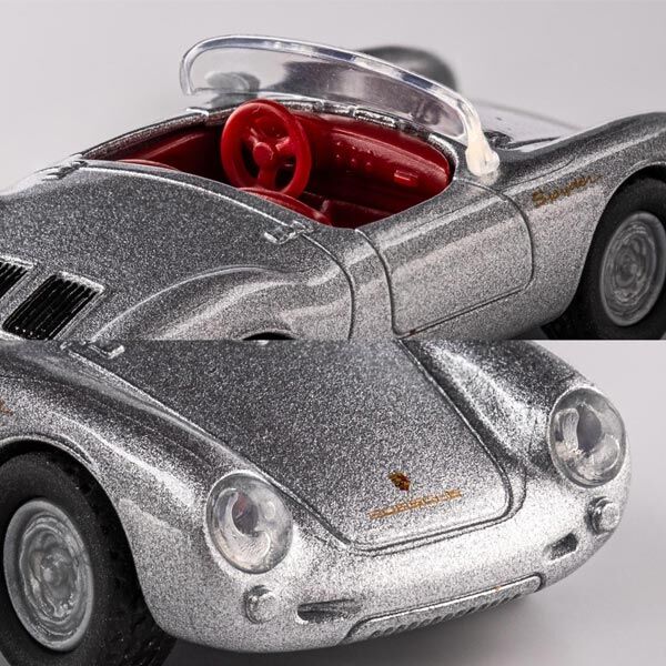 A myth on wheels, the 1955 Porsche 550 Spyder is one of the most famous sports cars of all time, renowned for its lightweight construction and agility. Developed for motorsport, it caused a sensation on the race tracks of the 1950s. With its silver finish, red interior and low, flat body, it exudes a pure racing feeling. The detailed 1:64 scale model is a highlight for collectors and Porsche enthusiasts.