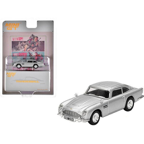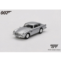 This model is distinguishable from the DB5 in “Goldfinger” by lacking the unique side mounted indicator lens next to the engine cooling vent on the front fender. This DB5 is displayed in its standard driving configuration with the gadgets cleverly concealed