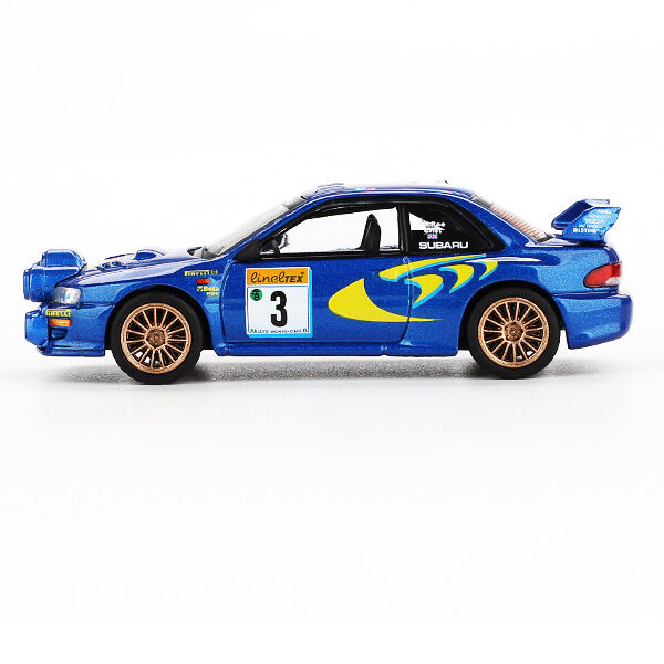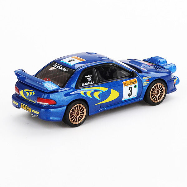 Experience the thrill of rallying with the Subaru Impreza WRC98 #3, McRae/Grist – 3rd Place, 1998 Rally Monte Carlo, now available as an exquisite 1/64 diecast model by Mini GT. This precision crafted TSM model faithfully replicates the iconic rally car, showcasing its aggressive stance, signature livery, and championship winning heritage.