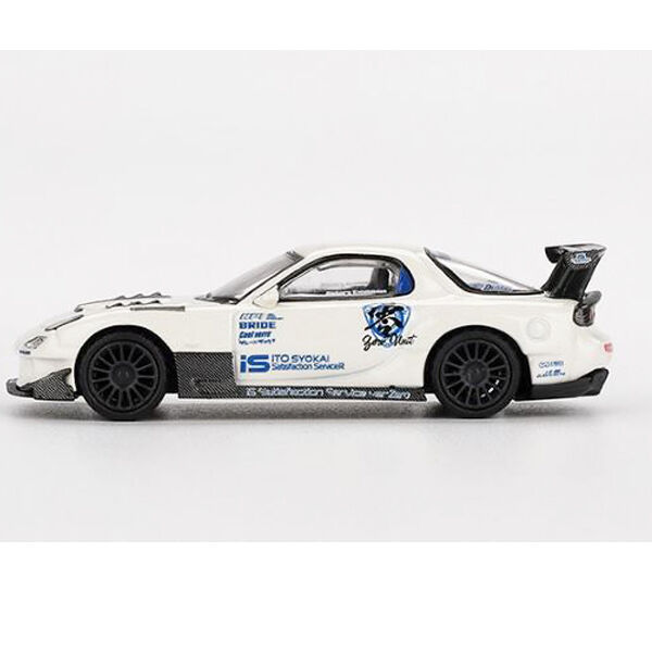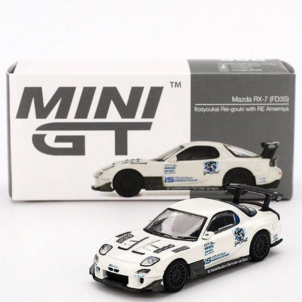 This 1/64 scale Mini GT Mazda RX-7 features the striking Itosyoukai Rei-gouki design and iconic RE Amemiya upgrades. With precise attention to detail, it's a must have for fans of this classic sports car, offering a unique addition to any collection