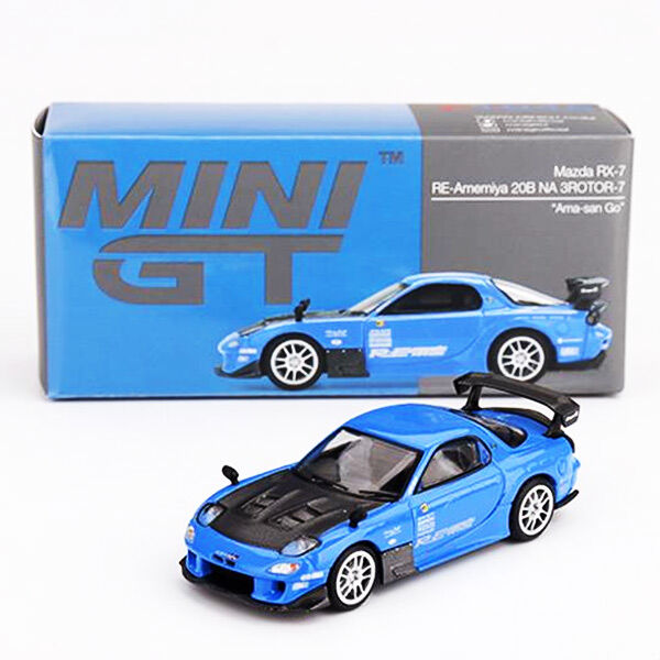 Experience iconic Japanese tuning with the Mini GT Mazda RX-7 RE-Amemiya 20B NA 3ROTOR-7 “Ama-san Go” in 1/64 scale.